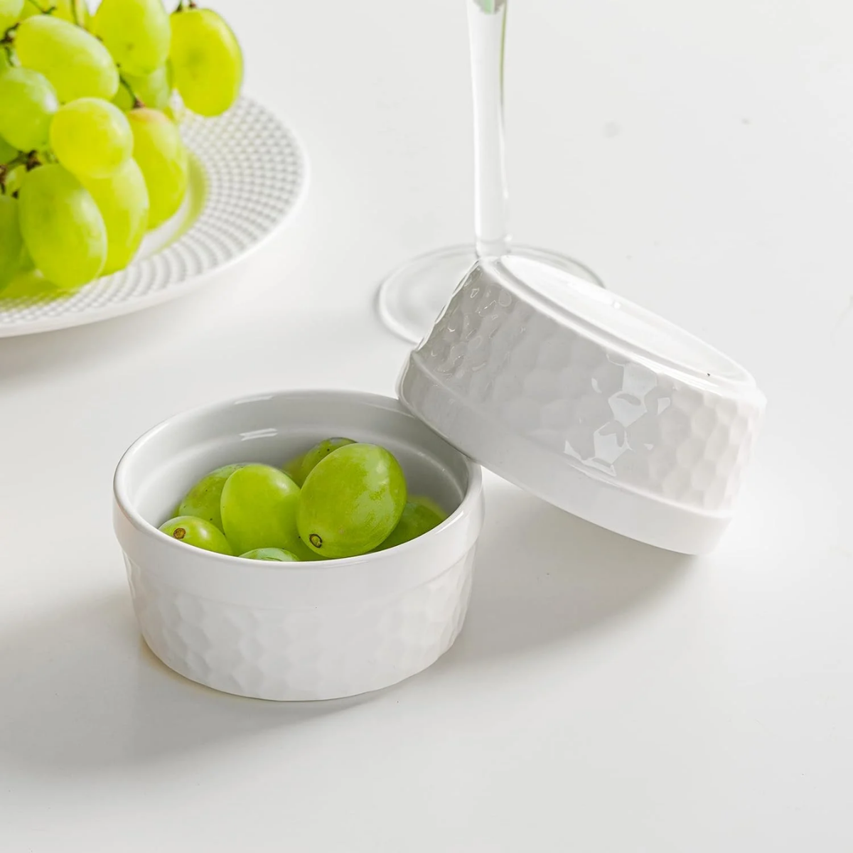 Juego De 3 Copetineros De Porcelana Blanca Texturados
