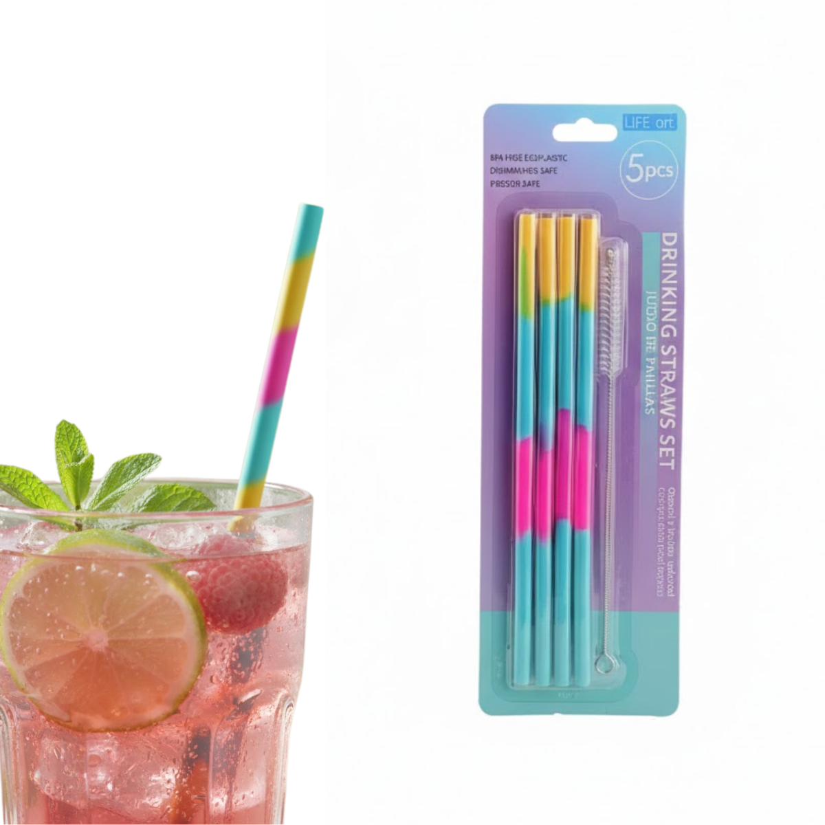 Set 5 Pajitas Reutilizables – 100% Silicona + Cepillo